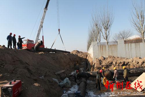 圖為排污管道施工現場