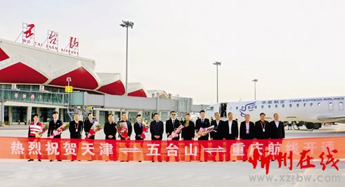 3月27日下午17時(shí)左右,由華夏航空公司CRJ900型飛機(jī)執(zhí)飛的G52785航班降落在五臺(tái)山機(jī)場,這標(biāo)志著天津—五臺(tái)山—重慶航線正式開通,首航航班往返客座率均超過95%。該航線每周4班,周一、三、五、日各往返飛行一班。重慶—五臺(tái)山—天津時(shí)刻為:重慶14時(shí)45分起飛,17時(shí)05分抵達(dá)五臺(tái)山機(jī)場,18時(shí)55分從五臺(tái)山起飛,19時(shí)35分抵達(dá)天津;天津—五臺(tái)山—重慶時(shí)刻為:天津20時(shí)30分起飛,21時(shí)20分抵達(dá)五臺(tái)山機(jī)場,22時(shí)00分從五臺(tái)山機(jī)場起飛,00時(shí)15分抵達(dá)重慶。另外,海口—五臺(tái)山的航線從3月27日起調(diào)整為??凇鹆帧迮_(tái)山。(趙夢嬌 攝)
