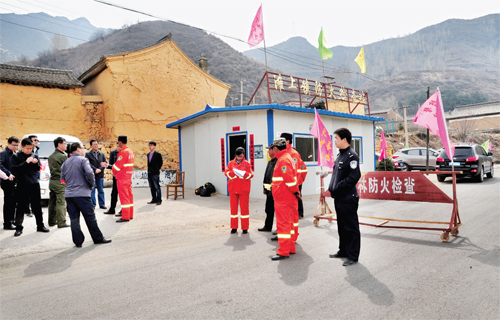 4月6日,代縣灘上鎮(zhèn)防火檢查站消防人員正在對進入山區(qū)的人員、車輛進行護林防火安全檢查。立春以來,代縣縣委、縣政府大抓護林防火工作,各鄉(xiāng)鎮(zhèn)實行鄉(xiāng)鎮(zhèn)干部包村、包片責(zé)任制,組建了30—50人的護林防火突擊隊,在通往山區(qū)、林區(qū)的各個交通要道設(shè)立護林防火檢查站,對過往車輛、人員進行護林防火安全檢查和護林防火宣傳教育。(楊繼興 攝)