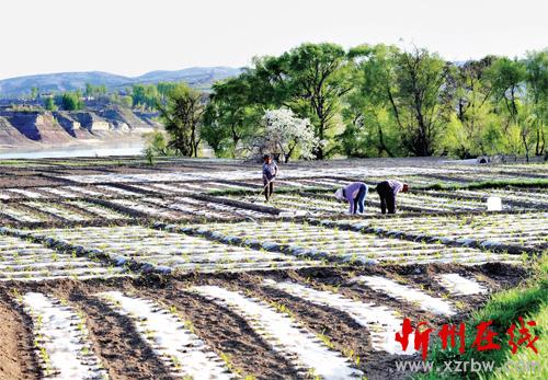 谷雨前后,點瓜種豆。4 月24 日,河曲縣文筆鎮(zhèn)唐家會村一戶村民正在剛出苗的玉米地里套種豆角。該村充分利用緊鄰黃河、灌溉便利的有利條件,通過實行地膜全覆蓋和套種等方式最大限度地提高土地收益。這一帶種植的玉米、豆角、大蒜等多種瓜菜類經(jīng)濟作物,尤其大蒜在周邊很有名氣,成為城區(qū)及周邊瓜菜等農(nóng)產(chǎn)品的重要供應(yīng)地之一。(鄔耿杰 攝)