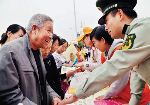近日,忻州市消防支隊官兵和消防志愿者一同走上街頭,為申辦全省旅游發(fā)展大會助力,志愿者們手持宣傳單向過往群眾宣傳消防安全知識,鼓勵大家積極支持全省旅游發(fā)展大會相關活動。過往群眾不時駐足觀看,現(xiàn)場拿出手機掃描二維碼參與投票。(張志遠 白耀周 攝)