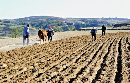 入夏以來,河曲縣山區(qū)農村進入繁忙季節(jié),梁峁溝坡,廣闊的田野上隨處可見農民在耕地、施肥、鋪膜、下種緊張忙碌的身影,構成一幅幅山區(qū)農村美麗的農忙畫卷。圖為五月十七日,鹿固鄉(xiāng)下榆泉村村民在耕地種植高產玉米。(鄔耿杰 攝)