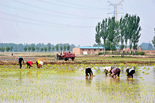 代縣沿滹沱河兩岸農民歷來有種植水稻的習慣,由于引進了新品種,又注重綠色環(huán)保,去年所產優(yōu)質大米成為市場上的搶手貨,每公斤售價達到五元,畝收入三千元,讓沿河農民嘗到了種水稻的甜頭,今年沿河農民恢復水稻種植五千余畝,目前已進入插秧的繁忙季節(jié)。圖為沿河農民插秧忙。(石俊文 馬振裕 攝)