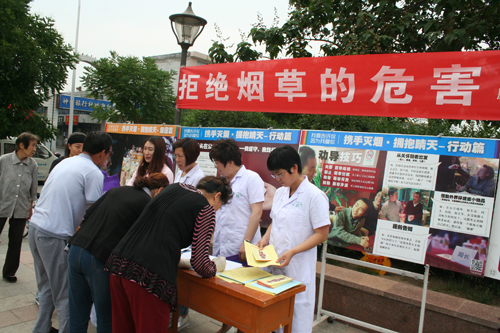 5月31日是“世界無煙日無煙日“原平市組織有關(guān)人員開展多種形式的宣傳創(chuàng)建無煙環(huán)境,提醒市民認識吸煙者影響身體健康和污染環(huán)境的危害性。(趙月仁 攝)