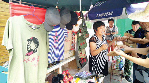 銷售旅游紀念品 大寨村現(xiàn)有200余戶人家,500多口人,登上大寨虎頭山會發(fā)現(xiàn),多數(shù)梯田已“退耕還林”,種植上了松柏、桃杏等景觀樹種。導(dǎo)游介紹說,大寨現(xiàn)在只剩下少部分集中連片、便于機械化耕作的土地。通過土地流轉(zhuǎn)承包,大寨依托集體產(chǎn)業(yè)統(tǒng)一耕種土地,種植收入歸村民所有。此外村民通過集資入股、發(fā)展旅游,每年都能取得分紅。(劉紀森 劉捷 王瀟陽 宮清華 攝影報道)