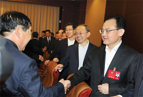 十月十三日晚,市委書(shū)記李俊明,市委副書(shū)記、市長(zhǎng)鄭連生等市領(lǐng)導(dǎo)看望參加市四屆人大一次會(huì)議的代表。(劉紀(jì)森 攝)