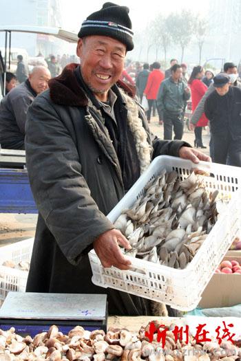 11月17日,原平市五彥村農(nóng)民白銀鎖正在市場(chǎng)上銷售鮮蘑菇,豐收的鮮蘑上市,使他喜上眉梢,甜在心頭。該市大力發(fā)展一村一品高效設(shè)施種植業(yè),讓農(nóng)民得到實(shí)實(shí)在在的實(shí)惠。他們高興地說(shuō),大棚種植業(yè)如今成為農(nóng)民勤勞致富的聚寶盆。(趙春曉 攝)