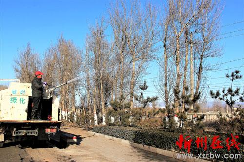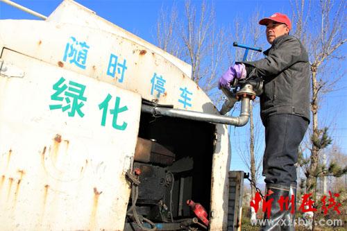 | 原平冬澆讓綠化帶不缺水分過冬 |