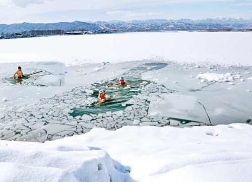 近日,一場(chǎng)大雪覆蓋了忻州大地,這對(duì)冬泳愛(ài)好者段晉新、王貴民、閆建斌三人來(lái)說(shuō),更是冬泳的最佳天氣。22日下午,他們來(lái)到忻府區(qū)雙乳湖破冰游泳,從中感受冰雪世界的愜意。據(jù)悉,他們是忻州康健游泳俱樂(lè)部組織者,從去年冬天開(kāi)始,他們?cè)陔p乳湖堅(jiān)持冬泳,風(fēng)雪無(wú)阻。本報(bào)記者 宮愛(ài)文 攝