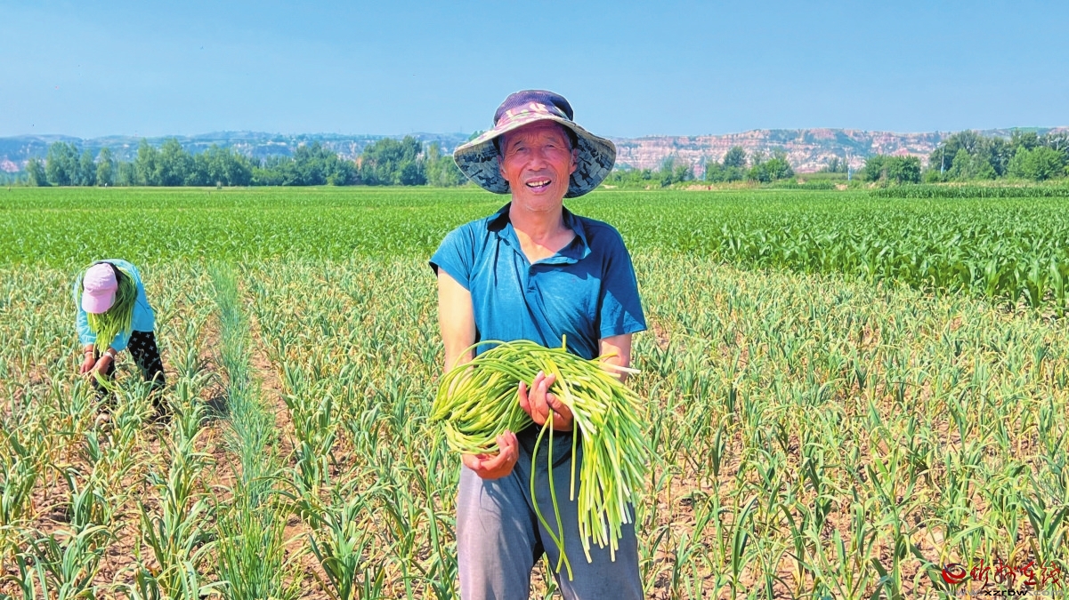 鄉(xiāng)村要振興,產(chǎn)業(yè)是關(guān)鍵支撐。眼下,正值河曲縣蒜薹成熟的時(shí)節(jié)。在西口鎮(zhèn)唐家會(huì)村的田間地頭,連片的蒜苗映入眼簾,一股濃濃的蒜香撲鼻而來。蒜農(nóng)們正俯身穿梭在蒜壟間,隨著手上一連串熟練的動(dòng)作,一根根新鮮嫩綠的蒜薹被快速抽出??粗种杏执钟珠L(zhǎng)的蒜薹,蒜農(nóng)們臉上洋溢著豐收的喜悅。蒜農(nóng)搶農(nóng)時(shí)、忙采收、話振興,小小紫皮蒜為鄉(xiāng)村發(fā)展注入了強(qiáng)勁活力。