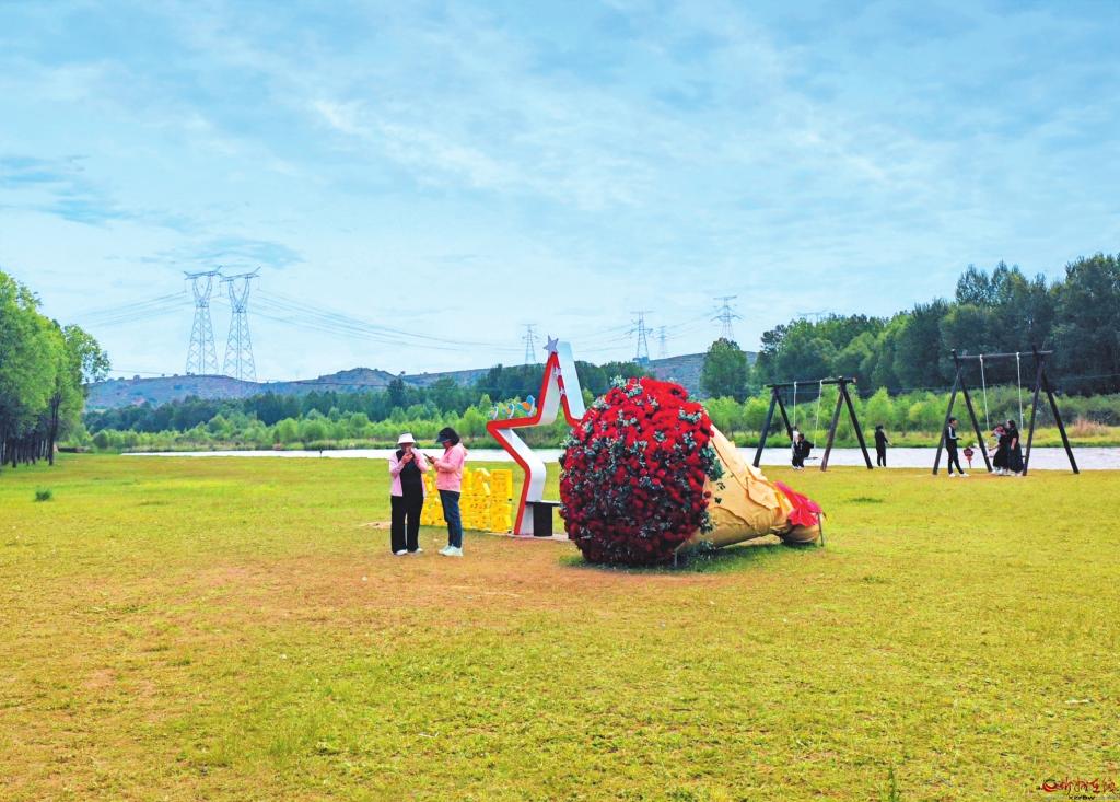 夏季熱浪漫卷時,靜樂汾河川國家濕地公園卻藏著別樣清涼。楊家崖段新落成“網(wǎng)紅打卡點”引來游人紛紛駐足——綠意盎然的草坪上,巨型玫瑰花束在陽光下“灼灼盛放”;以汾河為背景,秋千輕輕蕩漾,人們恰似生態(tài)畫卷中最靈動的筆觸,為這景致添了幾分鮮活意趣。年輕情侶在花束前合影,孩童嬉戲著在草坪上相互追逐……目前,“打卡”熱潮仍在持續(xù)升溫。 (記者 趙丹琦攝)