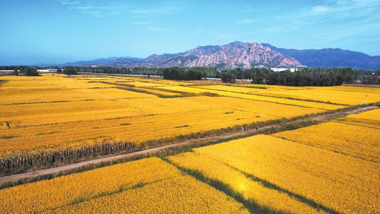 金秋的原平市大庫(kù)狄村,萬畝稻田鋪展成一片金色海洋。褚 震攝