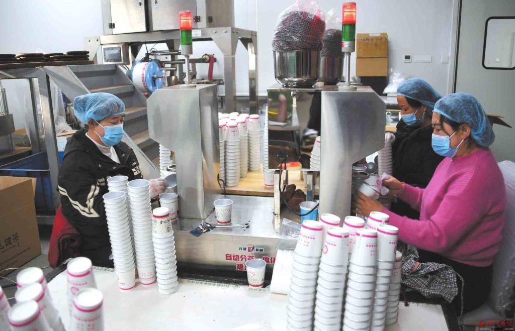 12月6日,寧武縣管涔仙草特色農(nóng)業(yè)科技開發(fā)有限公司的工人正在包裝毛健茶。該企業(yè)在傳統(tǒng)手工制茶工藝的基礎(chǔ)上,創(chuàng)新融入現(xiàn)代工藝技術(shù),大力打造品牌產(chǎn)品,既提升了產(chǎn)品附加值,也帶動了當(dāng)?shù)剞r(nóng)戶增收和縣域產(chǎn)業(yè)振興。(本報(bào)記者劉紀(jì)森攝)