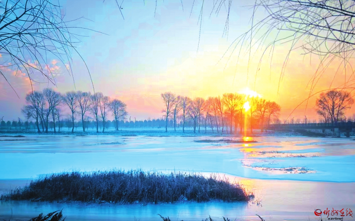牧馬河公園的雪,則是城市里的小確幸。柳樹的枝條裹著雪,像銀條般垂落。湖面結(jié)著薄冰,倒映著岸邊的雪樹,一派祥和景象。老人們?cè)谘┖蟮男缴仙⒉?,孩子們追跑打鬧,堆起憨態(tài)可掬的雪人,偶爾傳來(lái)的歡笑聲,讓整個(gè)公園都充滿了生機(jī)。