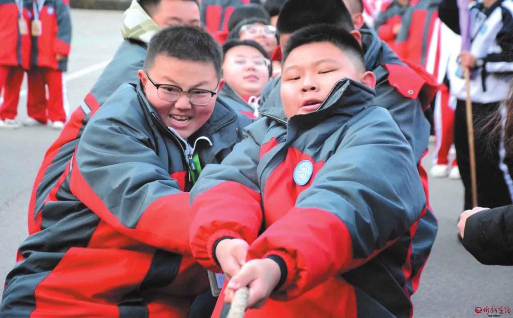 近日,忻州市北方初級(jí)中學(xué)舉行了冬季拔河比賽。比賽哨聲一響,賽場(chǎng)瞬間沸騰,參賽隊(duì)員們緊握長(zhǎng)繩,雙腳蹬地,身體后傾;老師們化身為啦啦隊(duì)長(zhǎng),揮動(dòng)雙臂,聲嘶力竭地為隊(duì)員們指揮節(jié)奏;各班同學(xué)則自發(fā)組成陣容強(qiáng)大后援團(tuán),將現(xiàn)場(chǎng)氛圍一次次推向高潮。(記者馮偉倫攝) (責(zé)任編輯:盧相?。?/span> |