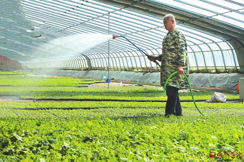 3月24日,原平市新原街道辦桃園村的溫室大棚內(nèi),嫩綠的種苗長勢喜人,工作人員正手持噴桿為育苗澆水?,F(xiàn)代化的大棚設(shè)施與精細化的田間管理,為保障市場供應(yīng)、助力鄉(xiāng)村產(chǎn)業(yè)振興筑牢了根基。(吉建平 攝)