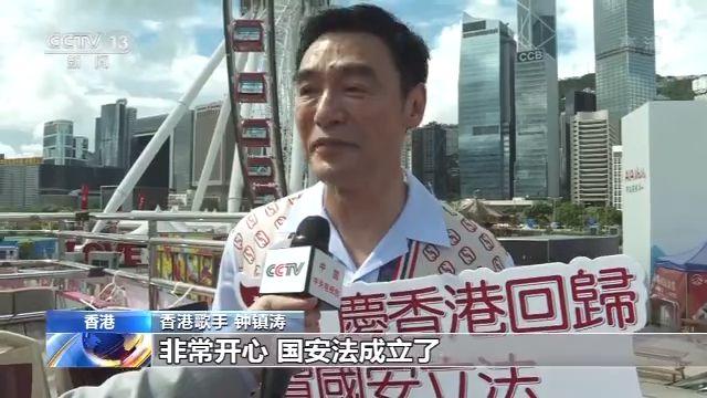 香港歌手 鐘鎮(zhèn)濤:非常開心,國安法成立了,那社會就更加安定了,我們各行各業(yè)都是覺得很慶祝的事情。今天(7月1日)早上一早出來的時候,經(jīng)過看見所有的人都是很高興的,看到就是在揮手,已經(jīng)很久沒有這個情形出現(xiàn)了。