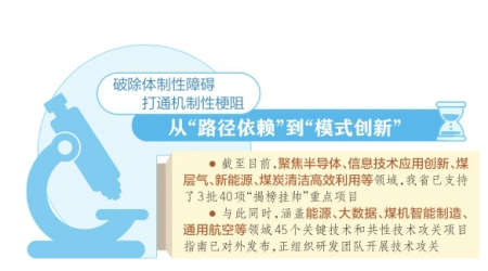 截至目前,聚焦半導(dǎo)體、碳基新材料、信息技術(shù)應(yīng)用創(chuàng)新、煤層氣、新能源、煤炭清潔高效利用等領(lǐng)域,我省已支持了3批40項(xiàng)“揭榜掛帥”重點(diǎn)項(xiàng)目,省財(cái)政引導(dǎo)資金2億元,帶動(dòng)企業(yè)投資7億元。與此同時(shí),涵蓋能源、大數(shù)據(jù)、煤機(jī)智能制造、通用航空等領(lǐng)域45個(gè)關(guān)鍵技術(shù)和共性技術(shù)攻關(guān)項(xiàng)目指南已對(duì)外發(fā)布,正組織研發(fā)團(tuán)隊(duì)開(kāi)展技術(shù)攻關(guān)。