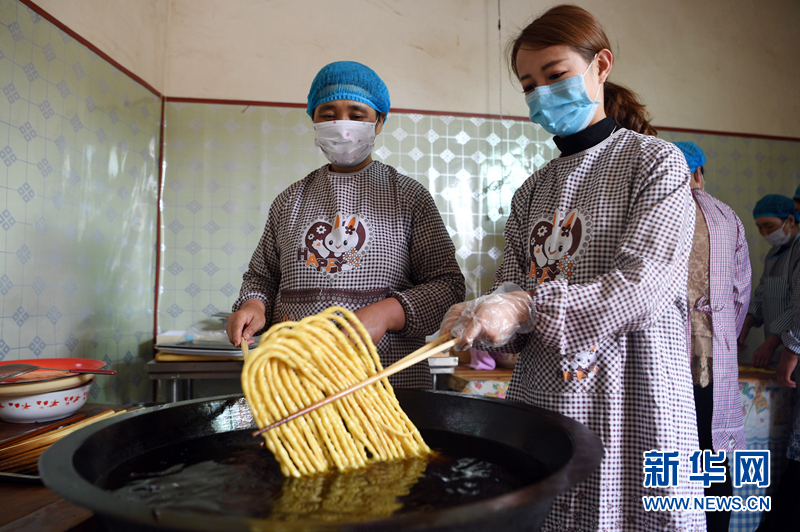 在東鄉(xiāng)族自治縣鎖南鎮(zhèn)鎖南村,馬娟(右)和員工一起加工油馃馃。(資料圖)新華社記者 范培珅 攝 金黃誘人、口感爽脆、花樣繁多的油馃馃頗受市場歡迎,供不應求,成了幫助東鄉(xiāng)貧困婦女增收致富的“金馃馃”。 為了幫助馬娟擴大創(chuàng)業(yè)規(guī)模,同時帶動貧困婦女脫貧,當?shù)卣哑髽I(yè)在布楞溝村援建的一處扶貧車間交由馬娟運營和管理。