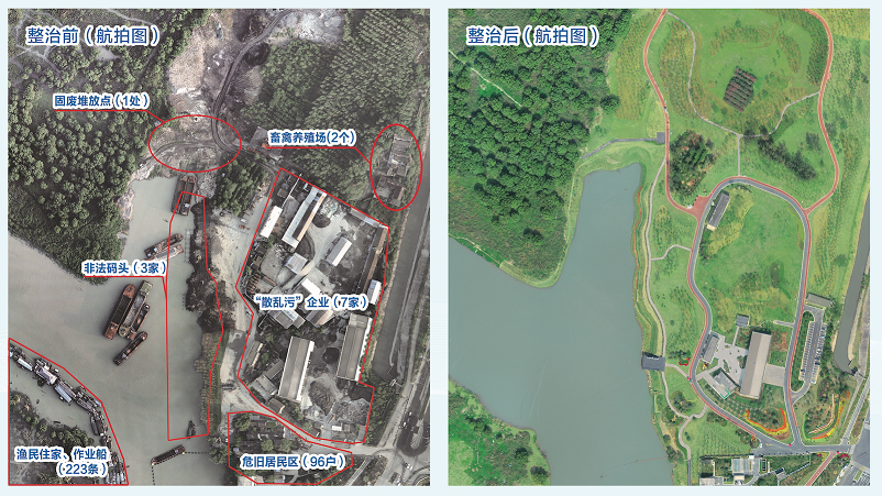 薛家洼生態(tài)園地處長江東岸,占地986畝,曾經(jīng)生態(tài)環(huán)境問題非常突出,原有非法碼頭3家,散亂污企業(yè)7家,固廢堆場1處,規(guī)?;笄蒺B(yǎng)殖場2個(gè),危舊民居96戶,??繚O民作業(yè)船、住家船223條?!扒缣煲簧砘?,雨天一身泥”,這是曾經(jīng)薛家洼的真實(shí)寫照。