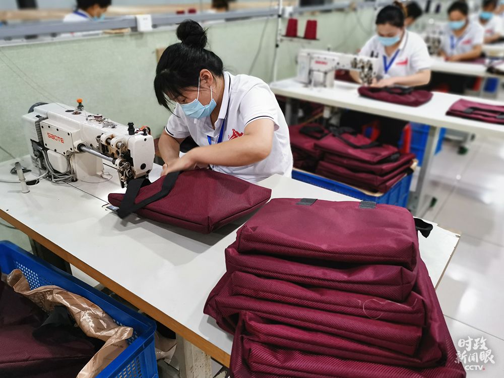 △紅亮箱包有限公司預計年產(chǎn)箱包100萬只。(總臺央視記者邢彬拍攝)