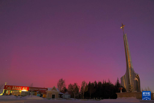 1月20日凌晨在黑龍江省漠河市北極星廣場拍攝的極光。(新華社發(fā) 邵天李 攝)