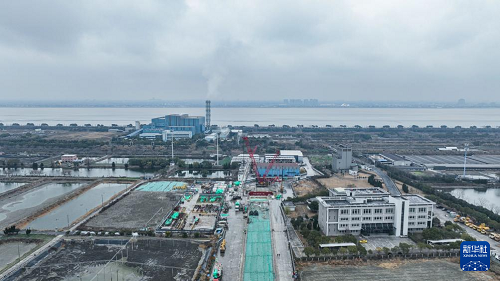 月20日拍攝的錢(qián)塘江高鐵盾構(gòu)隧道施工現(xiàn)場(chǎng)(無(wú)人機(jī)照片)。(新華社發(fā) 王欣 攝)