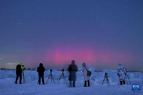 1月20日,在黑龍江省齊齊哈爾市,攝影愛好者在拍攝絢麗極光。(新華社發(fā) 王勇剛 攝)
