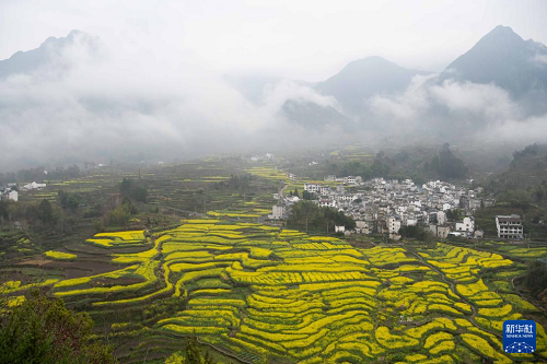眼下,安徽省宣城市績溪縣家朋鄉(xiāng)幸福村的油菜花田進入盛花期,大批游客來此踏青賞花。