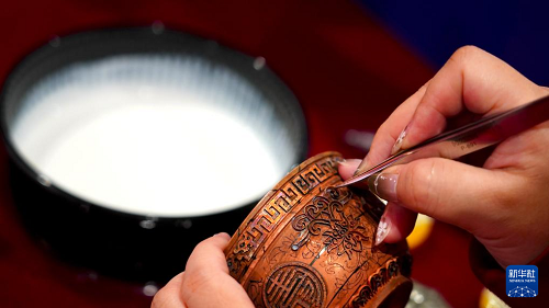 3月26日,殘疾人手工藝人現(xiàn)場展示非遺技藝。(新華社發(fā))