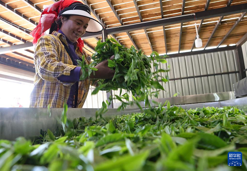 3月29日,在廣西賀州市平桂區(qū)鵝塘鎮(zhèn)盤(pán)谷村,茶農(nóng)在采摘明前茶。(新華社發(fā) 黃旭胡 攝)