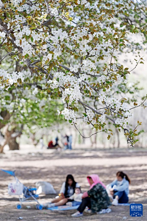 4月6日,游客在南長(zhǎng)灘欣賞梨花。(新華社記者 王鵬 攝)