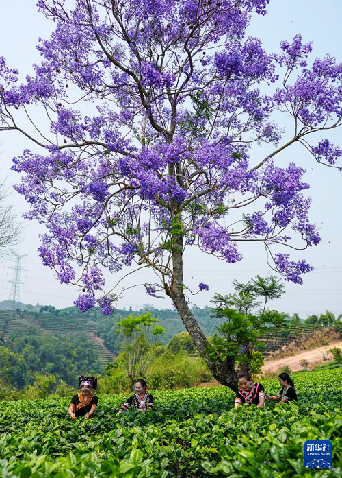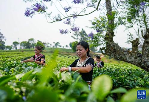 4月15日,茶農(nóng)在普洱市思茅區(qū)倚象鎮(zhèn)的茶山采摘春茶。(新華社記者 陳欣波 攝)