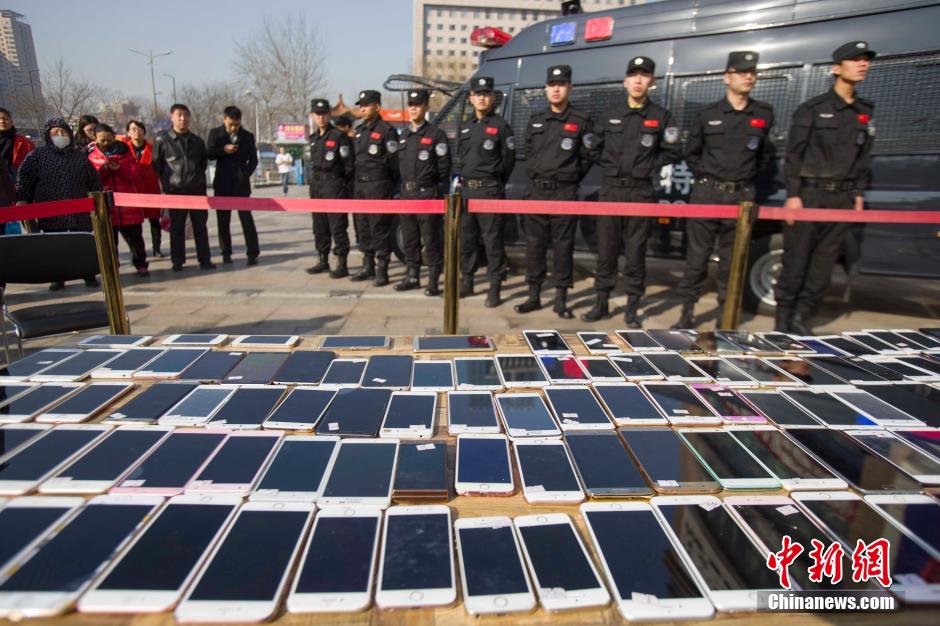 3月2日,山西太原警方發(fā)還民眾被盜手機(jī)。近日,太原市公安局偵破一個(gè)手機(jī)扒竊犯罪團(tuán)伙,破獲案件200余起,追繳手機(jī)180余部。張?jiān)?攝
