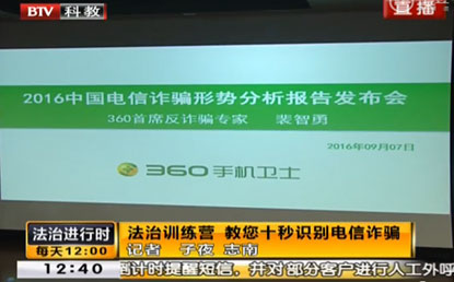 《法治進(jìn)行時》:只需10秒!360手機(jī)衛(wèi)士專家教您識別電信詐騙
