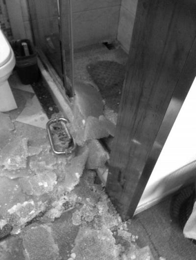 酒店衛(wèi)生間玻璃門破碎。當事人供圖