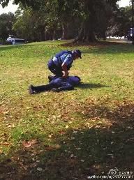 一名目擊導(dǎo)游說:“剛才有兩個客人在悉尼草坪上方便,讓警察看見了。警察追他們,他們提著褲子跑。他們惱羞成怒,要打警察。警察一個過肩摔,把一個男的摔地上骨折了?,F(xiàn)在救護(hù)車,警車都過來了?!?/p>