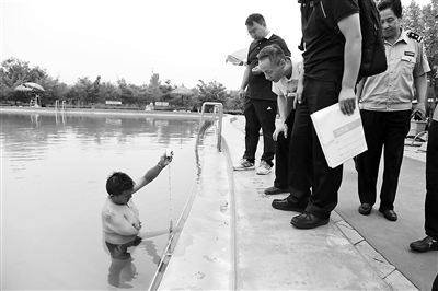 梅女士陪孩子參加幼兒園組織的河北保定溫泉小鎮(zhèn)旅游活動時不幸溺亡,因就賠償事宜協(xié)商未果,痛失親人的梅女士家屬將溫泉小鎮(zhèn)、幼兒園的負責人起訴到法院,索賠170余萬元。昨天,房山法院法官前往河北保定某旅游開發(fā)有限公司對事發(fā)現(xiàn)場進行了勘驗,該案將于近期開庭。