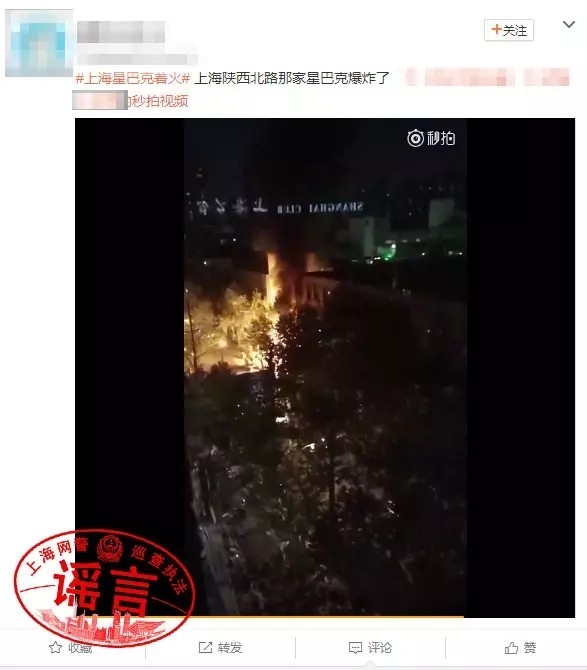 人民網(wǎng)北京8月15日電 (記者孝金波 實習(xí)生扶倩羽)8月13日,有網(wǎng)民爆料“上海陜西北路那家星巴克爆炸了”,并隨文上傳了一段現(xiàn)場視頻。8月14日,上海警方表示,此消息系謠言,是一名14歲學(xué)生在發(fā)現(xiàn)火情后,出于好玩而編撰了“星巴克爆炸”的謠言。