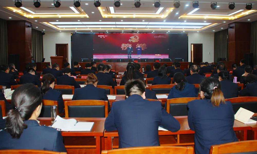 首先,與會干警齊唱《人民檢察官之歌》?!拔覀內嗣竦臋z察官,在莊嚴的國徽下集合……”激越鏗鏘的歌聲久久回蕩、不絕于耳。文以載道,歌以詠志。全體干警用歌聲唱出了檢察人的慷慨昂揚,唱出了檢察人的拳拳真意,唱出了檢察人的初心不改,唱出了檢察人的使命擔當。