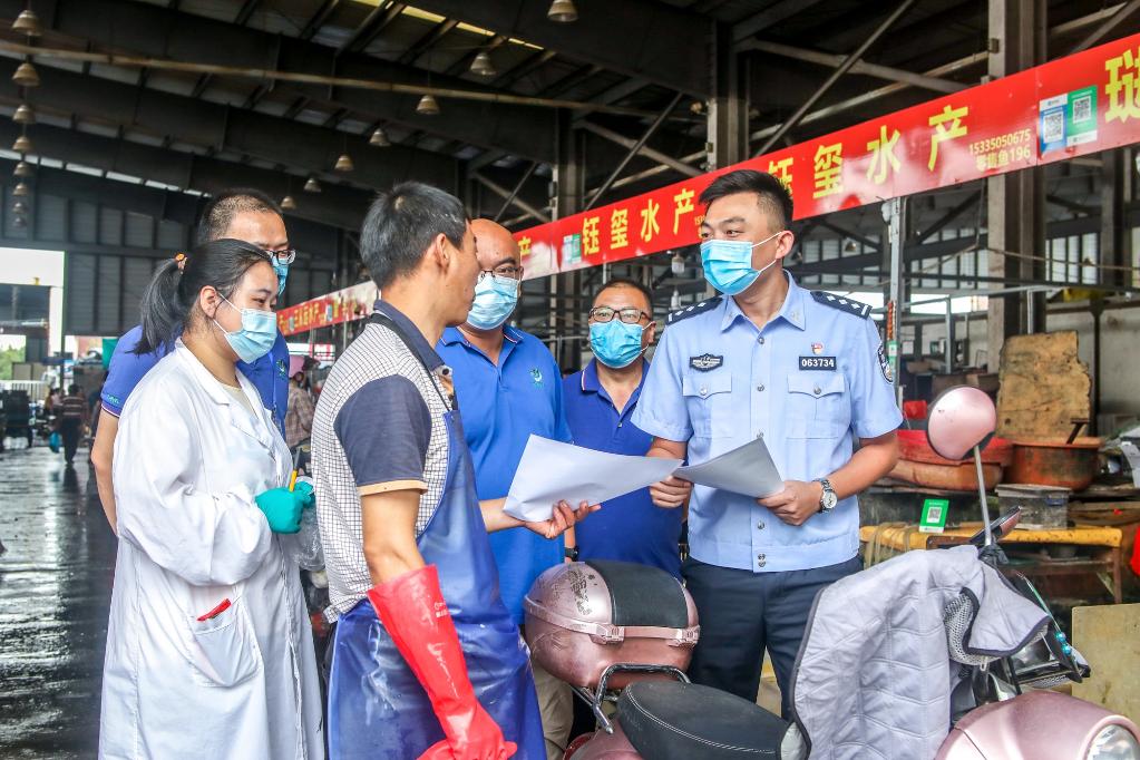 公安機(jī)關(guān)會(huì)同相關(guān)部門(mén)開(kāi)展聯(lián)合檢查,民警向商戶開(kāi)展法律宣傳。(公安部供圖)