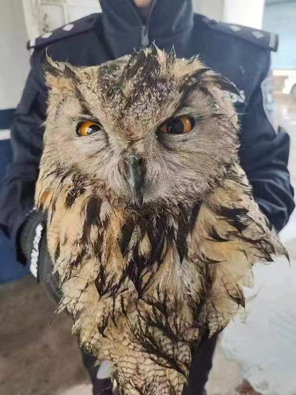 民警立即到達(dá)現(xiàn)場,仔細(xì)查看后發(fā)現(xiàn)貓頭鷹翅膀受傷,因巡鎮(zhèn)鎮(zhèn)沒有專門的野生動物救助站,于是將其送往當(dāng)?shù)孬F醫(yī)站治療。