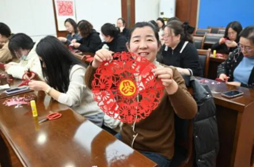 此次活動特邀五臺非遺剪紙傳承人王森煒現(xiàn)場教學(xué),從折疊技巧到紋樣設(shè)計,從鏤空雕刻到細(xì)節(jié)精修,干警們在老師的指導(dǎo)下沉浸式感受剪紙藝術(shù)的魅力。紅紙翻飛間,一幅幅寓意幸福吉祥、展現(xiàn)女性力量的剪紙作品逐漸成型。指尖流淌的不僅是傳統(tǒng)技藝,更是檢察女性剛?cè)岵?jì)、匠心獨運的精神底色。