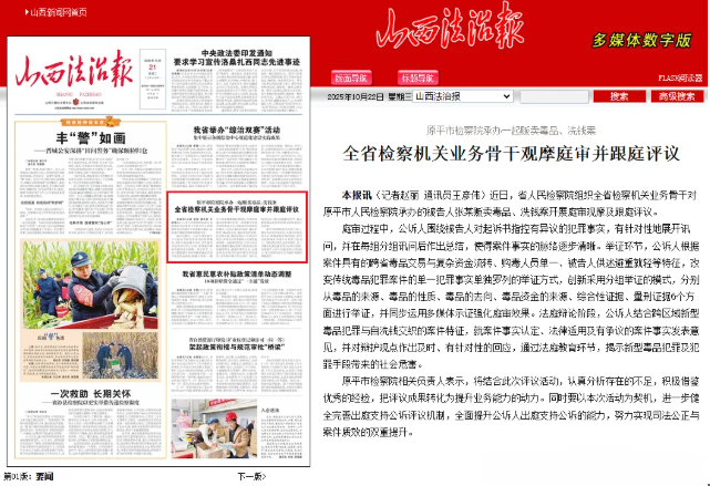 近日,省人民檢察院組織全省檢察機關(guān)業(yè)務(wù)骨干對原平市人民檢察院承辦的被告人張某販賣毒品、洗錢案開展庭審觀摩及跟庭評議。