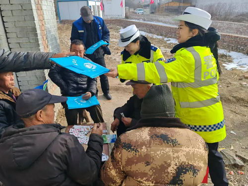 1月29日,五臺縣公安局交管大隊綜合中隊宣傳民輔警走進國道338沿線東馬村、興鄭村,開展“平安春運 交警同行”主題宣傳活動,將交通安全知識送到田間地頭、農(nóng)家院落,為即將到來的春運保駕護航。