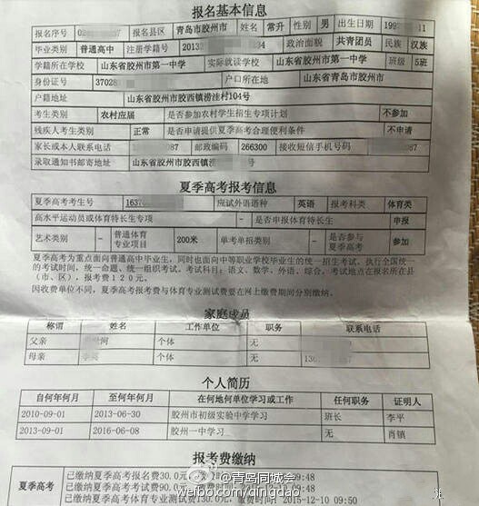 得知自己沒有被錄取之后常升立即將這一消息告訴了一直很關照自己的遲老師,這件事情也讓從事體育教育多年的遲老師十分不理解。帶著疑問,師生二人乘火車直接到了濟南向省招考辦尋求解釋,通過對考生“信息及志愿填報情況”的調取,遲老師和常升都驚呆了,原來常升的志愿被修改了,原本填報的陜西師范大學被改成了魯東大學,而且一連改了兩次,也就是說,即使常升當時發(fā)現(xiàn)志愿被篡改也改不回來,因為考生的志愿最多可以修改兩次。
