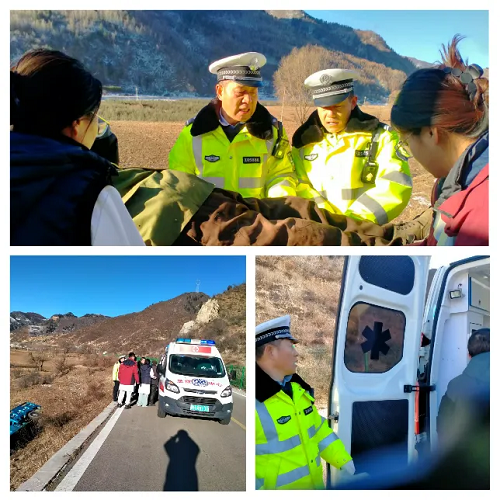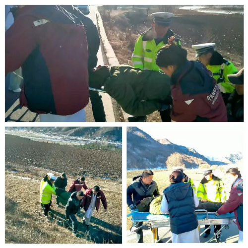 1月17日9時(shí)15分,寧武縣公安局交警大隊(duì)東寨中隊(duì)接到縣局110緊急指令,東黃線(xiàn)1KM+500處(窯子彎村附近)一輛農(nóng)用三輪車(chē)不慎墜入溝中,有人員受傷。接到指令后,中隊(duì)民輔警火速出動(dòng),趕赴事發(fā)地點(diǎn)實(shí)施救援處置。
