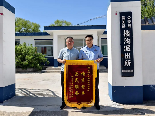 6月9日,樓溝鄉(xiāng)副鄉(xiāng)長、柏家咀村書記顧升寬代表柏家咀村民委員會懷著感激之情,將一面繡有“情系老兵為民服務(wù)”字樣的錦旗送到偏關(guān)縣公安局樓溝派出所,真誠感謝樓溝派出所為轄區(qū)困難群眾辦實(shí)事,幫助柏家咀困難退伍老兵丟失戶口50余載、身邊無親人照料的顧二小補(bǔ)辦戶口。