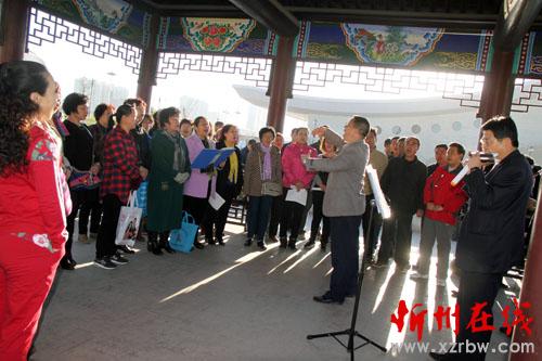 4月8日。原平市市民們正在環(huán)境優(yōu)美的范亭廣場上,彈拉琴唱,強身健體歌聲飄揚樂悠悠,享受著春天氣息和如今好生活。(趙春曉 攝)
