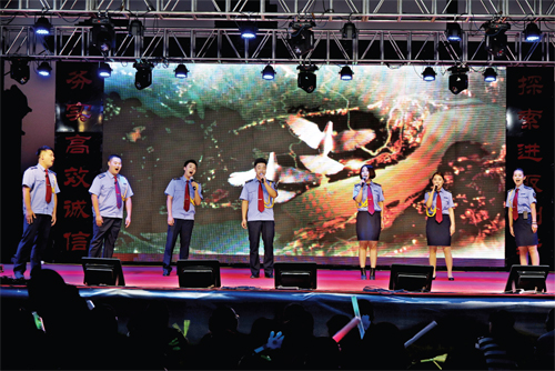 這場(chǎng)以“頌歌獻(xiàn)給黨,共圓中國(guó)夢(mèng)”為主題的文藝晚會(huì),是保安押運(yùn)人精心組織,自編、自導(dǎo)、自演的一臺(tái)節(jié)目,就像該公司黨委書(shū)記陳志平所說(shuō):“這場(chǎng)文藝晚會(huì)是我們保安押運(yùn)人向黨95歲華誕獻(xiàn)上的頌歌?!?月29日第一場(chǎng)晚會(huì)于晚8時(shí)正式上演,晚上7時(shí)便有觀眾陸續(xù)來(lái)到演出現(xiàn)場(chǎng)。第一場(chǎng)晚會(huì)就讓觀眾大呼過(guò)癮,節(jié)目形式多樣,有小合唱、獨(dú)唱、配樂(lè)詩(shī)朗誦、舞蹈、雙簧、小品、服裝秀等。其中舞蹈《映山紅》、男生獨(dú)唱《紅旗飄飄》、電聲樂(lè)隊(duì)《閃閃的紅星》歌曲串燒等用不同的藝術(shù)形式表現(xiàn)了保安押運(yùn)人對(duì)黨和祖國(guó)的熱愛(ài)之情,感染了現(xiàn)場(chǎng)的觀眾;而雙簧表演《文武雙全》將晚會(huì)現(xiàn)場(chǎng)氣氛推向高潮,兩位表演者夸張的表情、搞笑的扮相引得觀眾連連叫好。